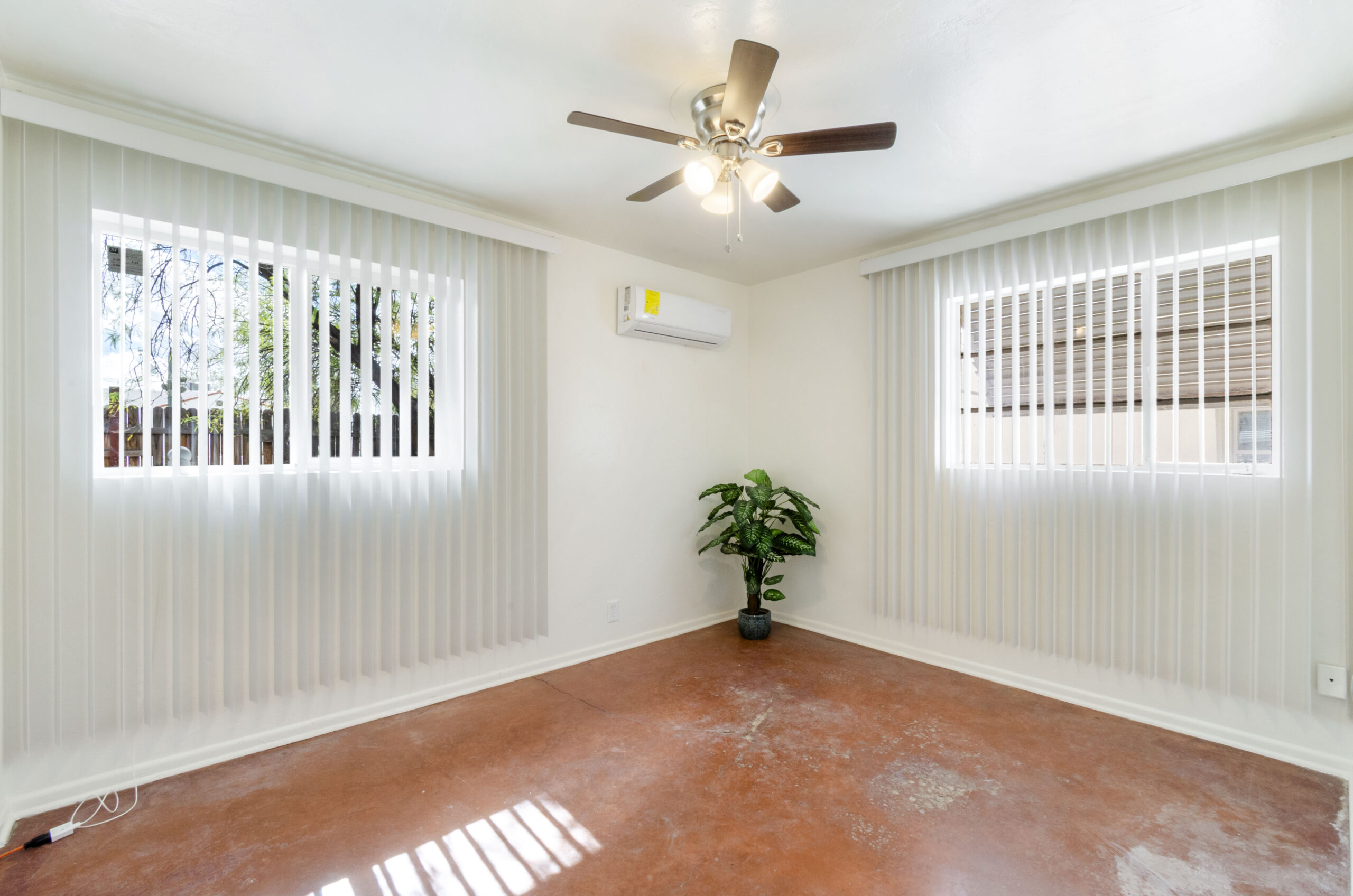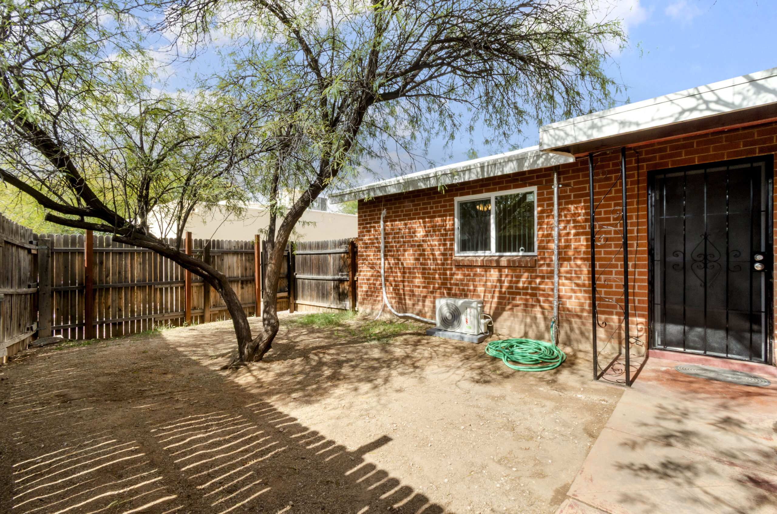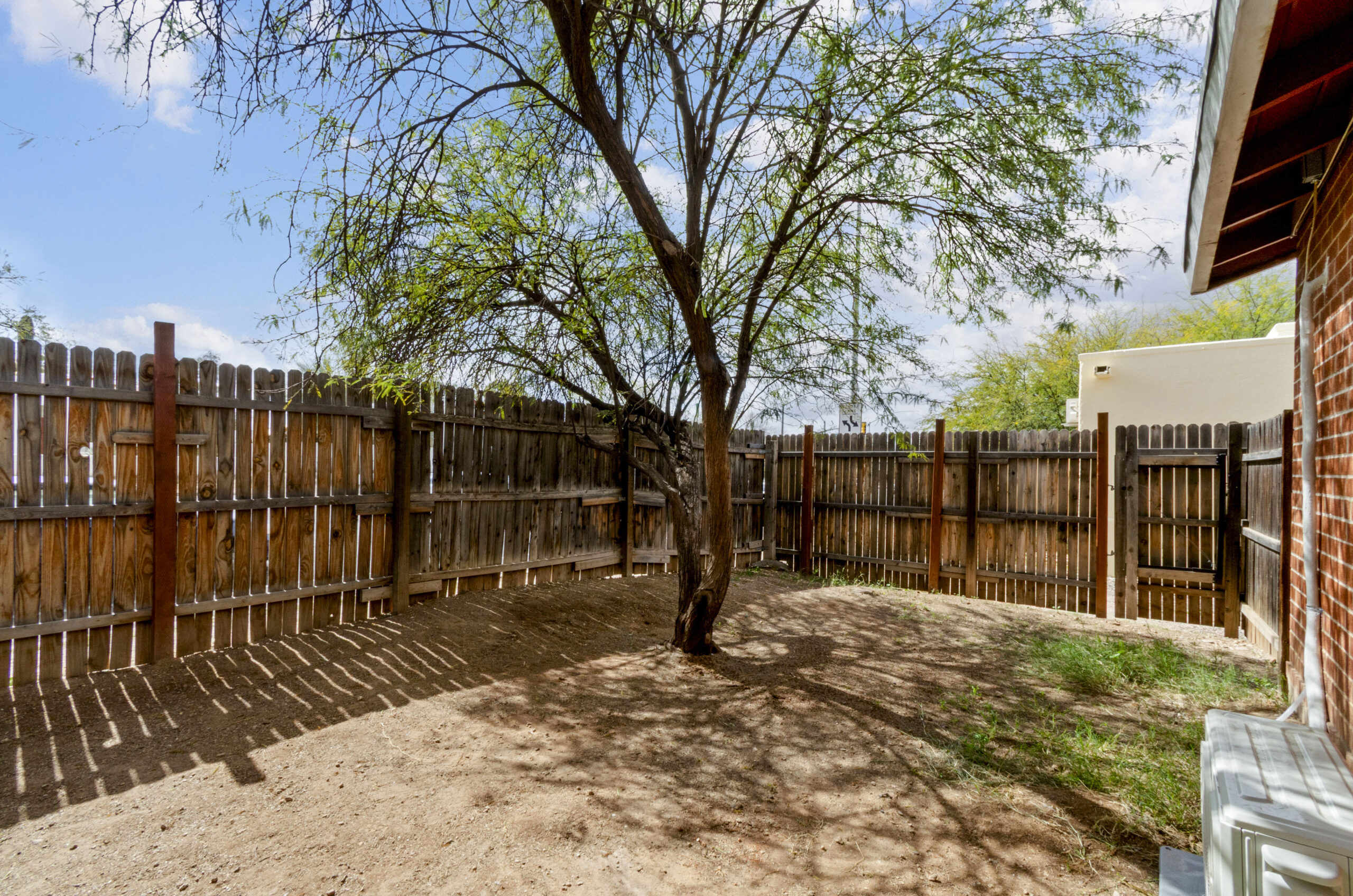 Private, shaded fenced back yard (on Grant Rd) has a large mesquite tree and plenty of space. Washer and dryer is included (shared by 3 tenants). This house has a small studio on one end (duplex). The second small studio on property is available now (please inquire).