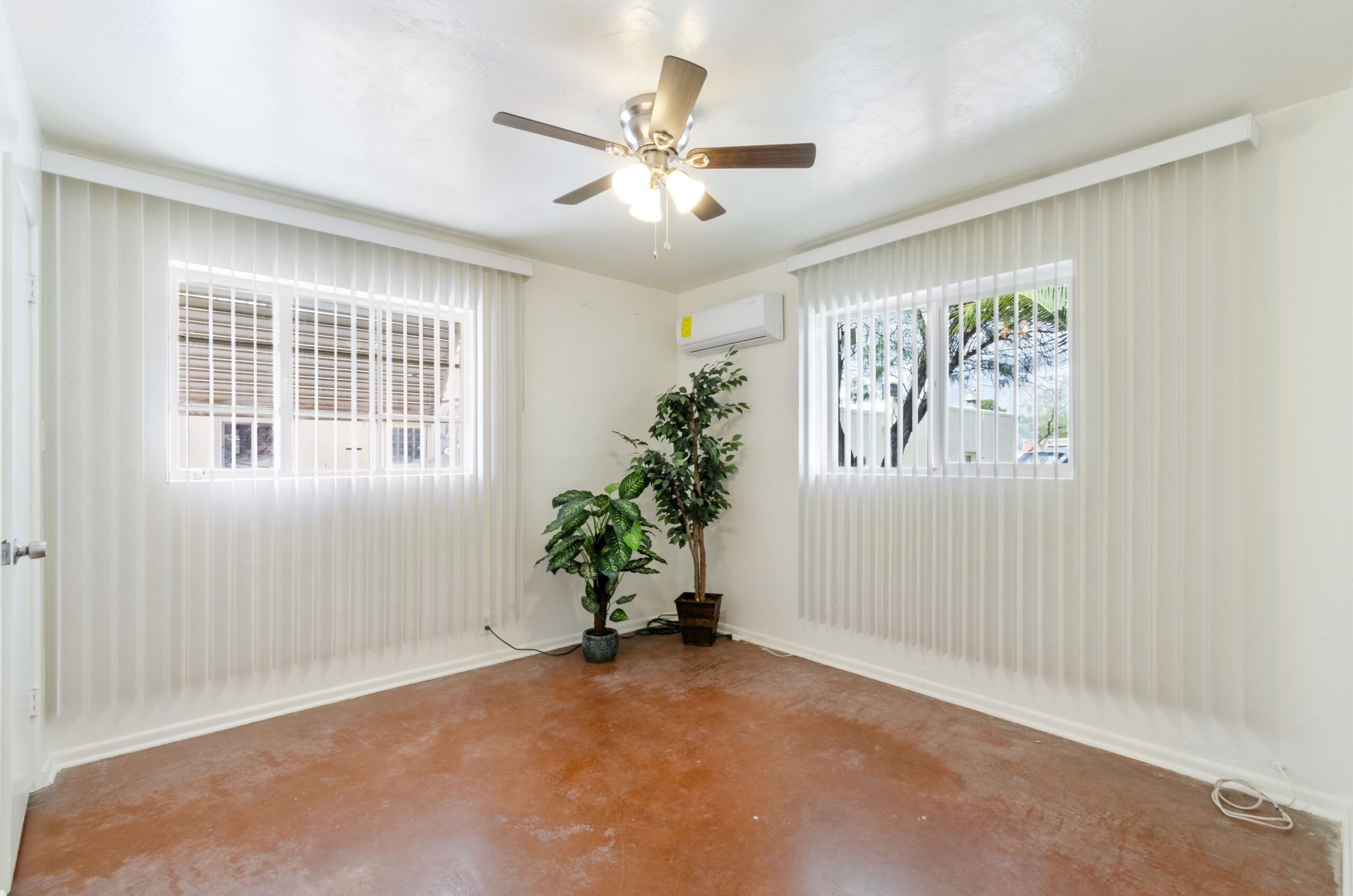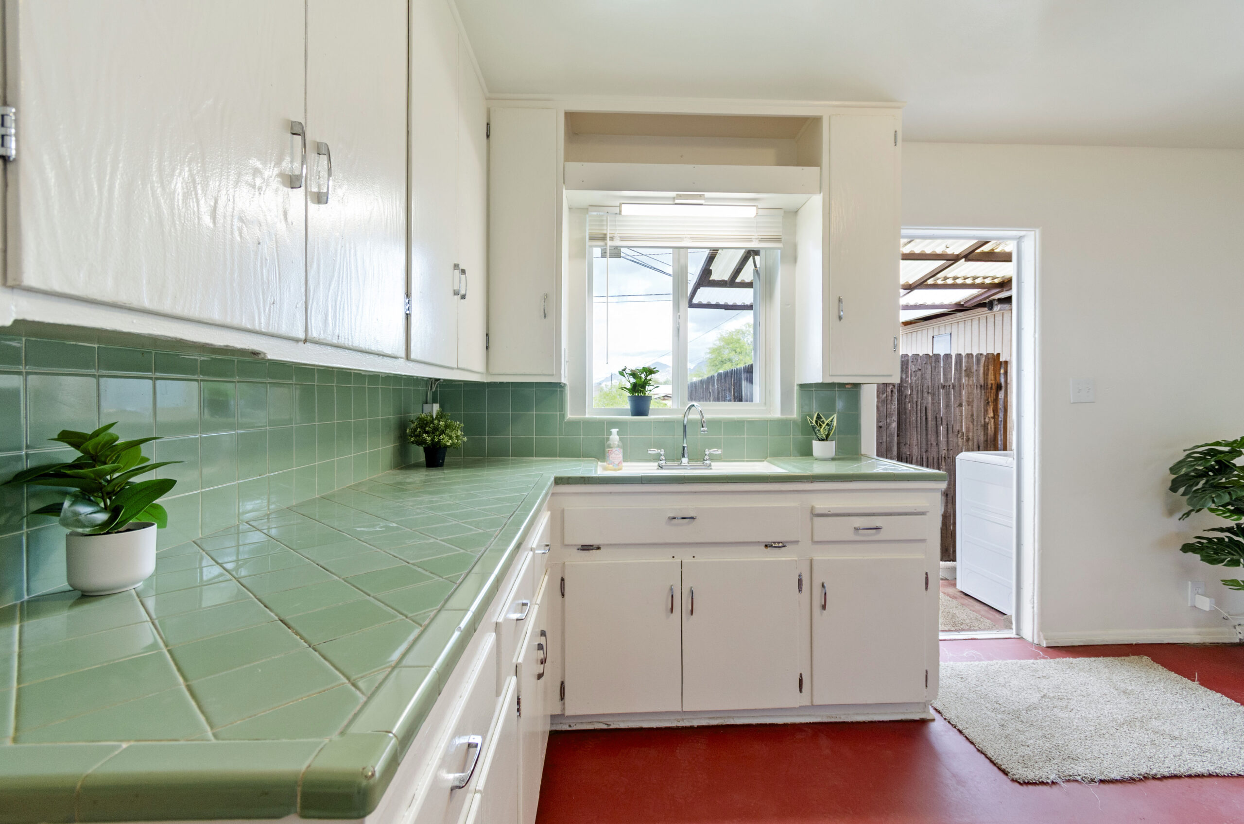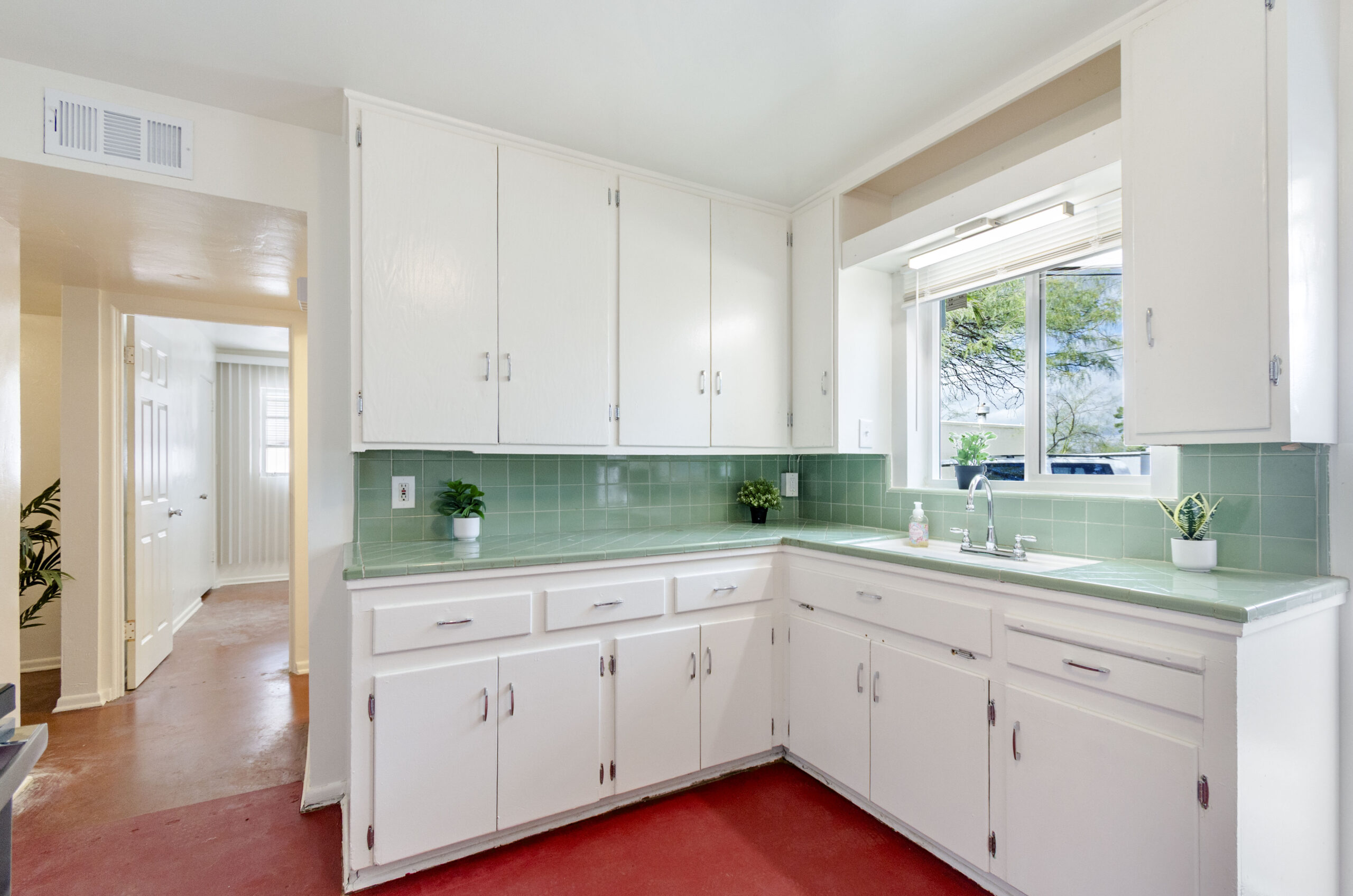 This updated 950 sq. ft. main house offers the best of original vintage and refreshed new styling. Original features include 1950’s terra cotta stained concrete floors, art deco tiled counter tops, cottage cabinets and several original casement windows. Brand new updates are a freshly painted interior and kitchen floor, new GE stainless side by side (in-door ice & water) refrigerator, matching electric GE stove, new bathroom vanity & toilet, reglazed tub/shower surround. Updated comfort includes 3 brand new Mini Split AC/Heat systems, ceiling fans, 4 brand new double pane windows and blinds.