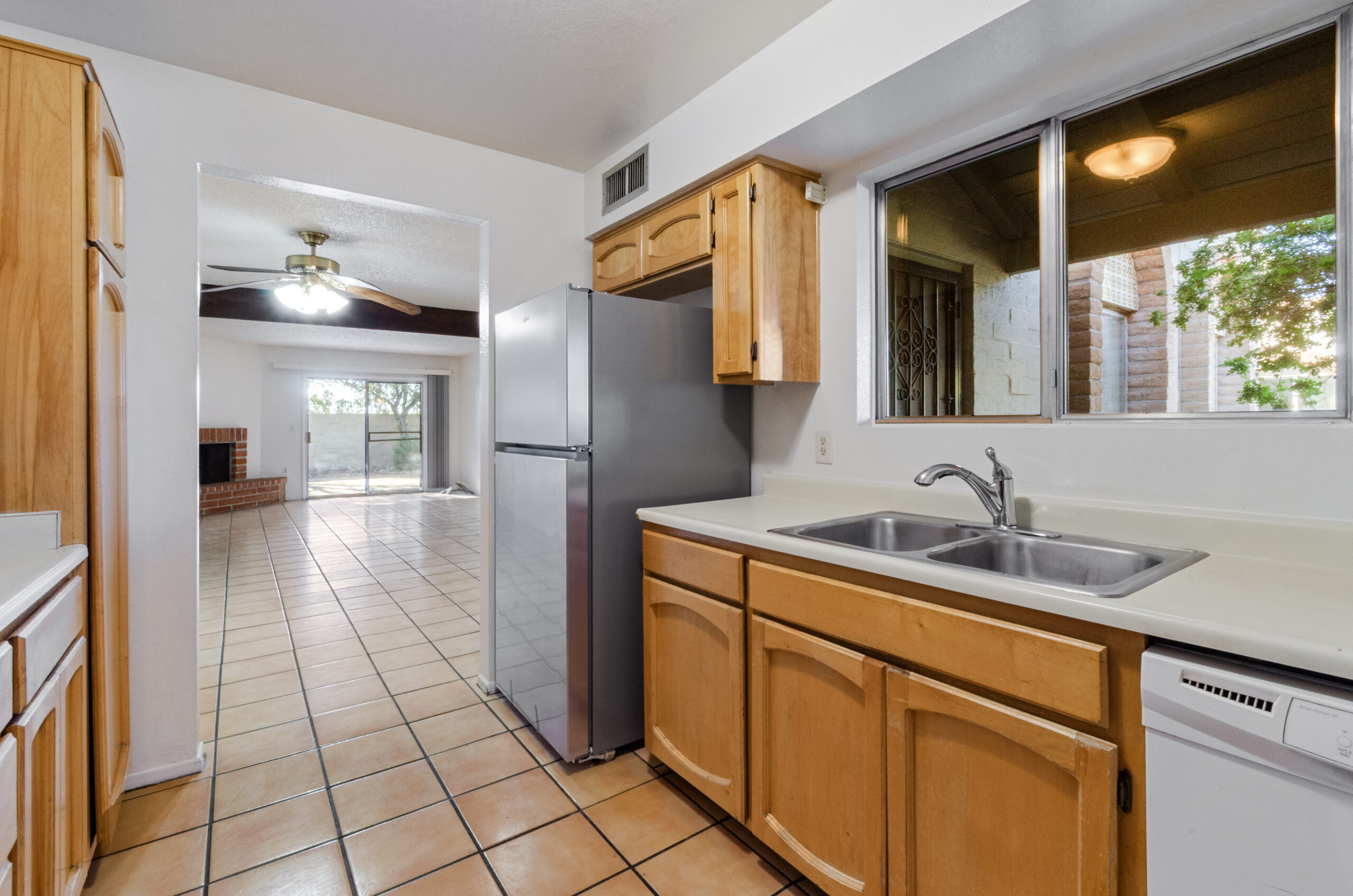 Discover this well-appointed 3-bedroom, 2-bath townhome in Tucson, AZ featuring all tile floors throughout and a spacious living room ideal for everyday living. The interior includes a large room that can serve multiple needs and new appliances in the kitchen. Outside, enjoy a landscaped backyard and covered parking for convenience. Located in Tucson, this property combines low-maintenance finishes with practical amenities.